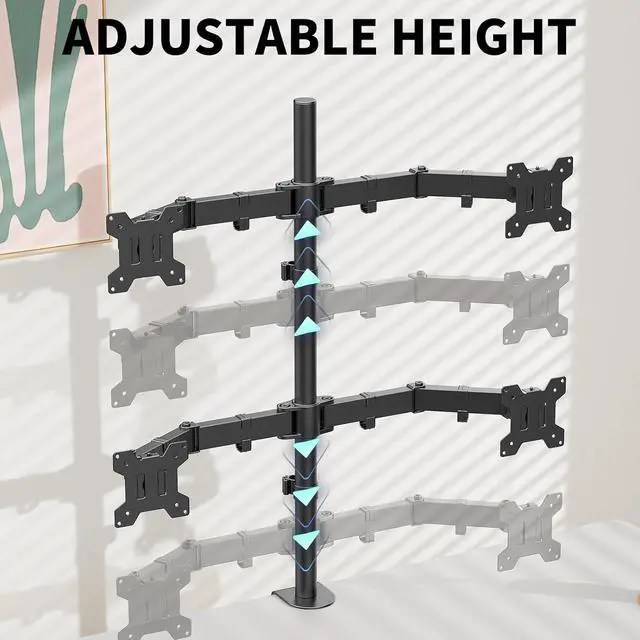 • Enhanced Stability: The sturdy monitor stand is made of high-quality steel and can securely install 4 monitors. The center pole is 28.54 inches high and the horizontal installation bracket is spaced 28.9 inches apart.