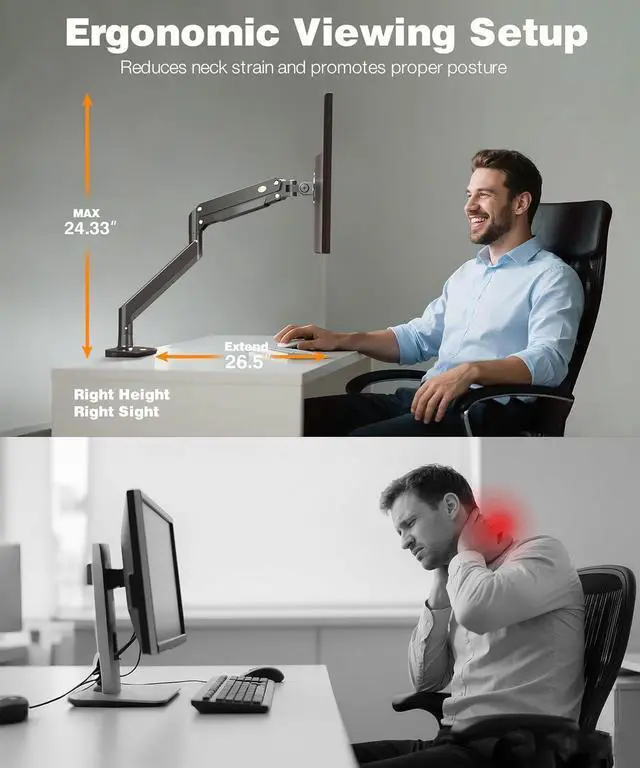 Heavy Duty and Customer Service:This brazo para monitor hold Monitor up to 33lbs. We are equipped with a professional team to answer your questions. Please buy with confidence