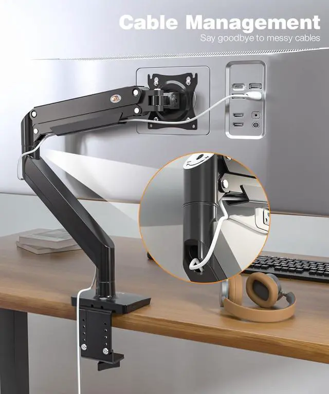 Save 30% Desk Space:This desk mount monitor stand can be easily mounted via C-clamp (desk 0.39"-3.54" thick) or grommet mounting (table hole size is8mm). Free up desk space and declutter your workspace efficiently