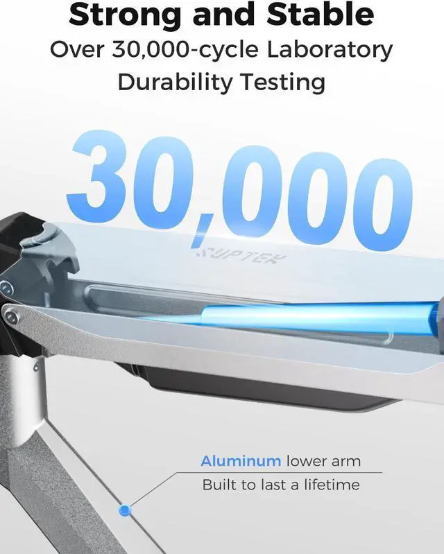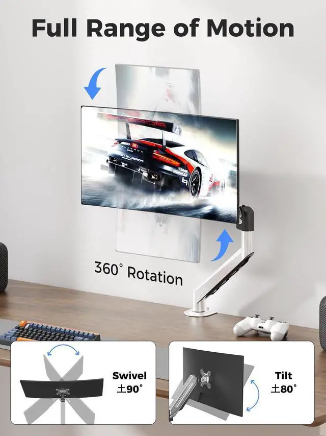 Premium all-metal construction Stability is key to productivity. Crafted from high-strength metal with a lightweight aluminum alloy lower arm, this mount eliminates annoying monitor wobble while you type or game. The premium matte finish and streamlined design not only look great in a modern office or RGB gaming room but also free up valuable desk space for your keyboard, books, or a cup of coffee.