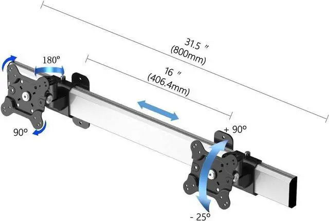 Supports two flat panel VESA monitors side by side up to 32 with mounting hole patterns of 75 x 75 and 100 x 100. Excellent space saving and ergonomic solution
