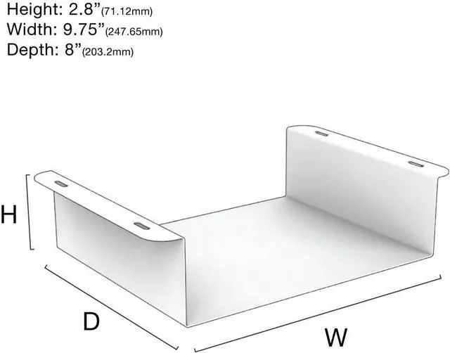 SPECIFICATIONS: Dimensions: 9.75" Width x 2.8" Height x 8" Depth. Model ID: UCM-139. Made in U.S.A. by Oeveo. Made of 16GA Cold Rolled Steel. Powder Coated Flat Black. All mounting hardware included: four black 1-1/4" screws, four wall anchors.
