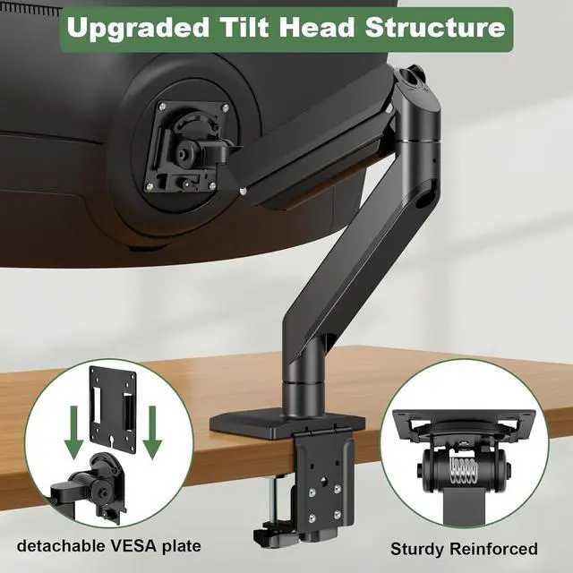Reinforced Construction: Crafted from premium aerospace-grade aluminum, our ultrawide monitor arm is sturdy enough to hold 44 lbs curved monitor and 55 lbs flat screen; upgraded tilt head ensures secure support for larger monitors while maintaining stability
