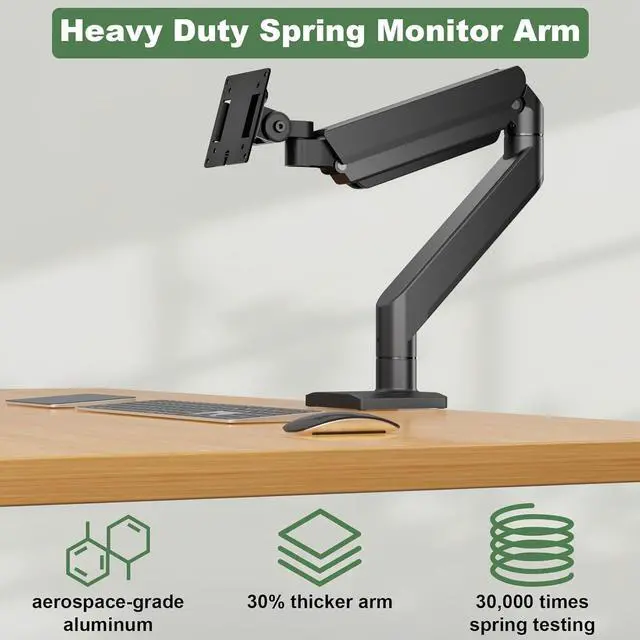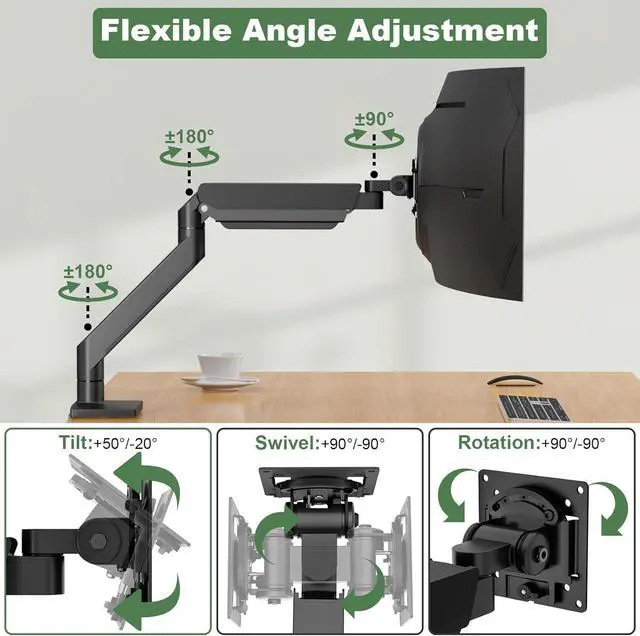 Articulating Monitor Mount: Thanks to the improved built-in gas spring mechanism, the long reach monitor arm can be extended forward up to 23.7" and adjusted to a maximum height of 23.6", making it a great addition to your standing/sitting desk setup; the integrated cable management system easily routes messy power cords/cables to keep your desktop clean and organized