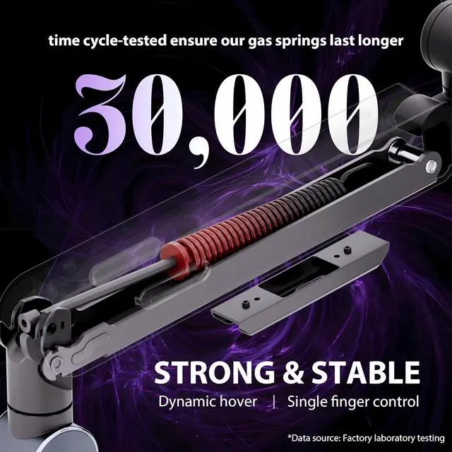 More Sturdy & Durable: At THEARK, we focus on improving the strength and stability of our single monitor stand. The single desk monitor mount uses mechanical spring cores and has undergone 30,000 motion tests, which means it is more durable. Dynamic hover, single finger operation, more convenient.