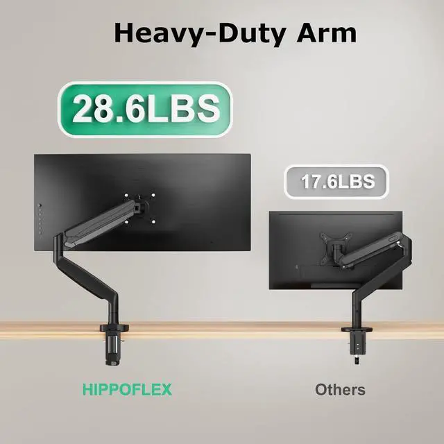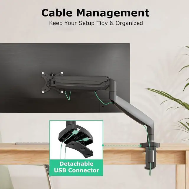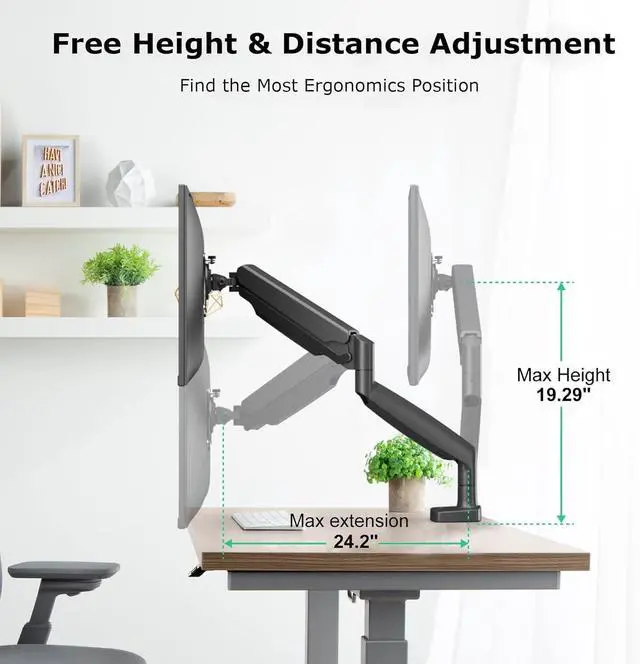 • Upgrade Gas Spring ArmThe monitor desk mount has a built-in gas spring system which has been tested over 25,000 exercise tests,which means means it is stable. Enjoy the freedom to adjust your monitor height and angle and angle to meet your ergonomic requirement.