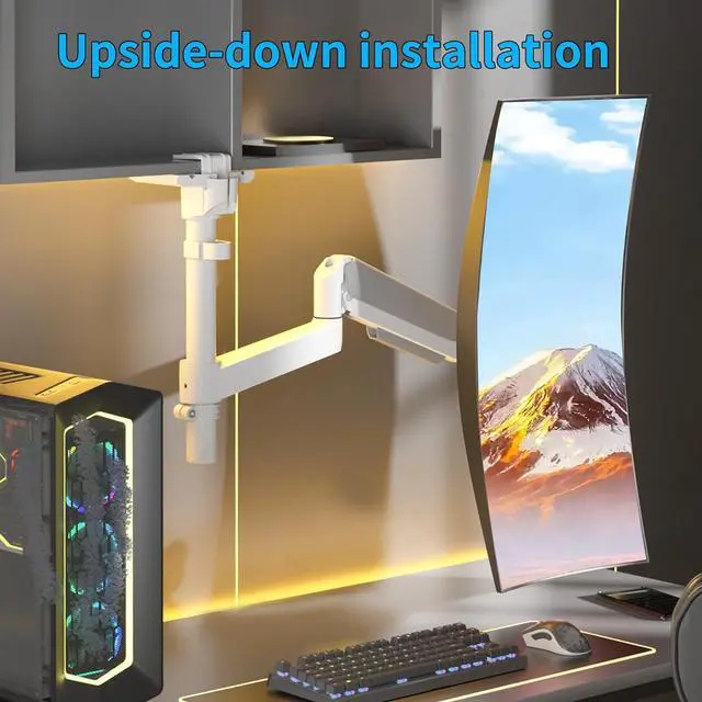 Space-Saving and Tidy: This heavy duty monitor arm designed with integrated cable management helps save more than 90% desktop space compared to a monitor holder with heavy-duty base.It features integrated cable management. The built-in cable management covers keep cords organized, preventing messy tangles and freeing up the desktop, These advantages make for a tidy office and entertainment area
