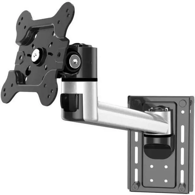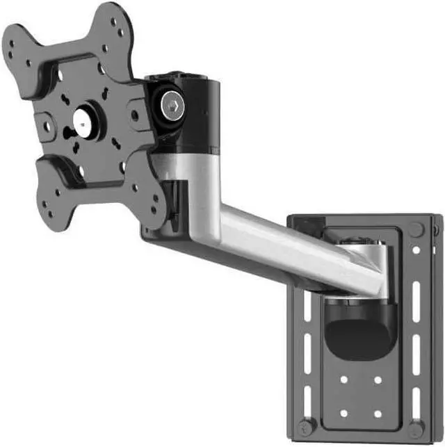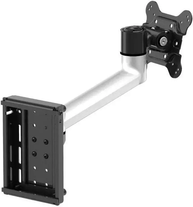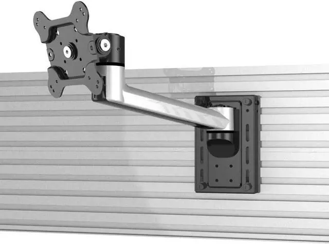Whether in a classroom, industrial setting, office space, or any other sort of professional environment, the Slat Wall Single Swivel Supreme Monitor Mount is an accessory created exclusively for slat wall mounting, and can be best described as providing extraordinary capabilities without complexity. Monitors up to 50 in size and weighing no more than 44 lbs. will look great and function even better when supported by this mounting solution. The handsome black aesthetic will look right at home in any locale, while the robust offering of features is enough to make you consider outfitting your entire office with these units! Enjoy benefits such as 90° effortless rotation that allows for portrait and landscape viewing, a lifesaver that eliminates endless scrolling for multi-page documents, 115° of tilt (-90° backwards/+25° forwards), full 180° swivel, and optional dynamic height adjustment of up to 9.4 to allow for the ultimate in workplace ergonomics, alongside a minimum depth of 4.4. This mount is compatible with slat walls with a groove edge thickness of 0.079" - 0.35" and spacing of 1.27"- 6". Installation is quick and easy, and supports VESA patterns 75 x 75 and 100 x 100 (can also support 200 x 100 and 200 x 200 via an additional adapter plate, sold separately). If your days at work or school call for extended periods of viewing a monitor, make sure its one thats mounted with the Slat Wall Single Swivel Supreme Monitor Mount!