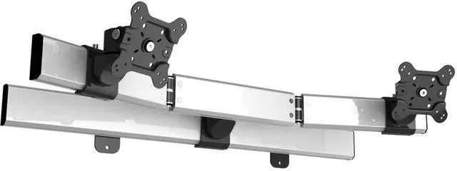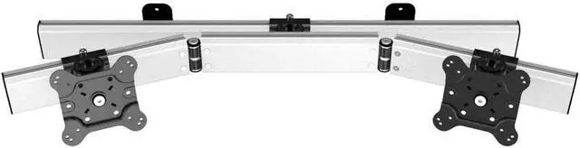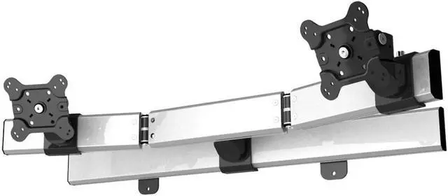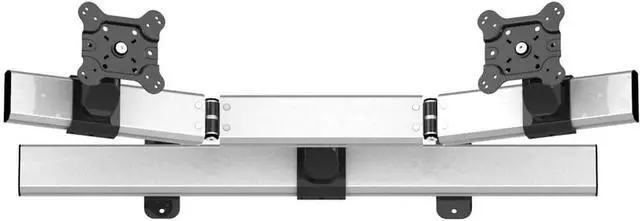 The monitor beam can be adjusted in an arc configuration. Accommodates various display sizes; slide screens into place to align edges