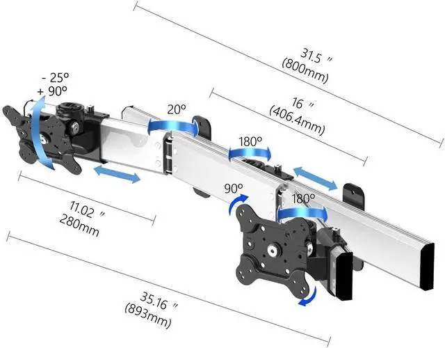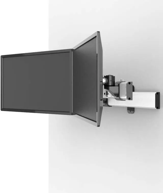 Supports two flat panel VESA monitors side by side up to 30 with mounting hole patterns of 75 x 75 and 100 x 100. Excellent space saving and ergonomic solution