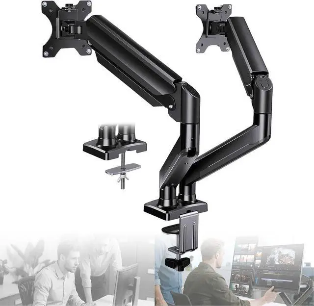 FULL MOTION GAS SPRING ARM: Equipped with a premium, cycle-tested pneumatic system, this dual monitor arm desk mount offers effortless, multi-dimensional adjustability. Enjoy smooth 360° rotation for landscape or portrait modes, along with flexible tilt and swivel functions. Easily customize your screen positions to find the Excellent viewing angle with this computer monitor stand for 2 monitors