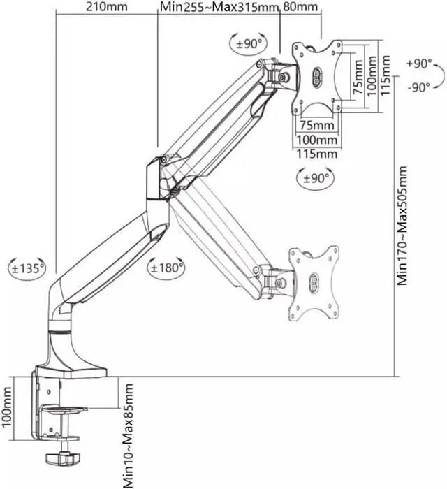 Fully Adjustable - The gas spring arm offers an exceptional range of flexible motion featuring -90° to +90° tilt, 180° swivel, 360° rotation, and 13.1" of smooth height adjustment with gas spring lift.
