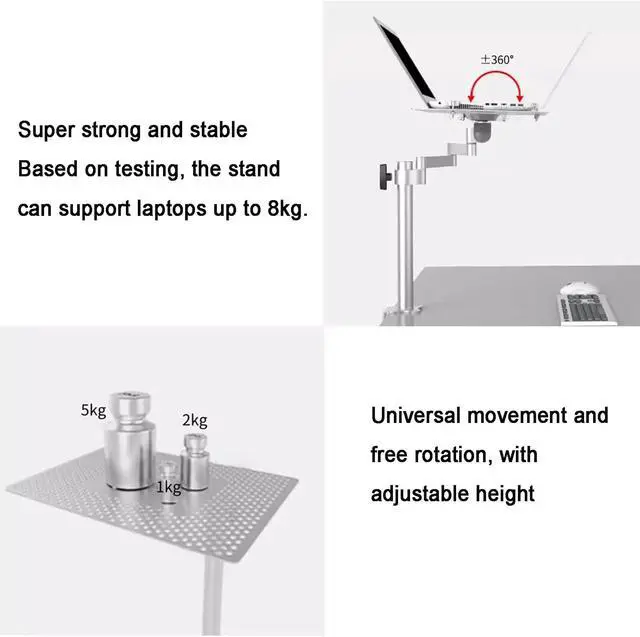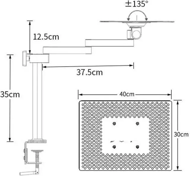 Adjustable Angle:The arm of this monitor desk stand is fully independently adjustable. The laptop platform supports 135° adjustment up and down, 360° rotation horizontally, and a 35cm height adjustment range provides you with more options