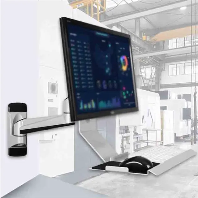 The wall-mounted monitor stand securely supports your screen, freeing up more valuable space on your workstation.