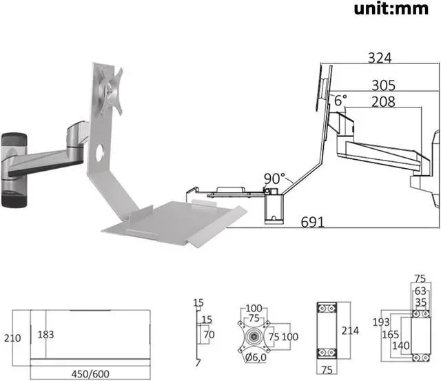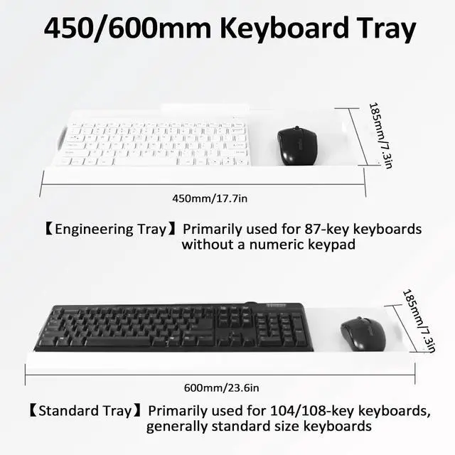 Keyboard BracketEquipped with a 90° folding tray, providing ample space for your keyboard and mouse (optional 450mm/17.7in or 600mm/23.6in), it's ideal for creating a comfortable standing workstation.