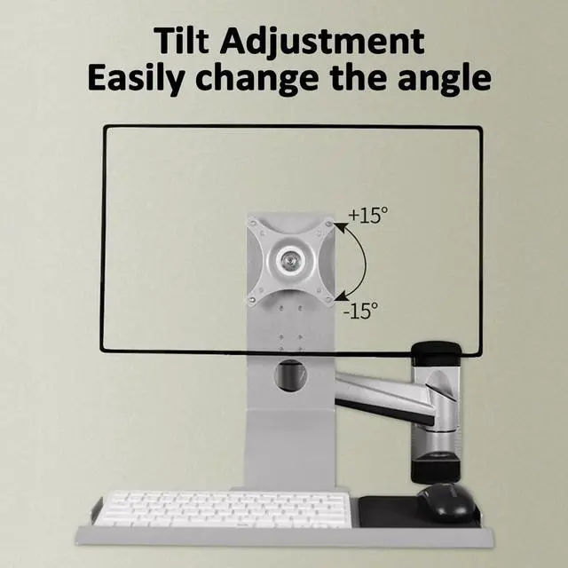 Flexible AdjustmentOur monitor bracket supports ±15° tilt adjustment, 360° swivel adjustment (for horizontal or vertical screen display), and dual-axis 180° horizontal swivel, allowing you to easily find your ideal viewing angle. Note: Height adjustment is not supported.