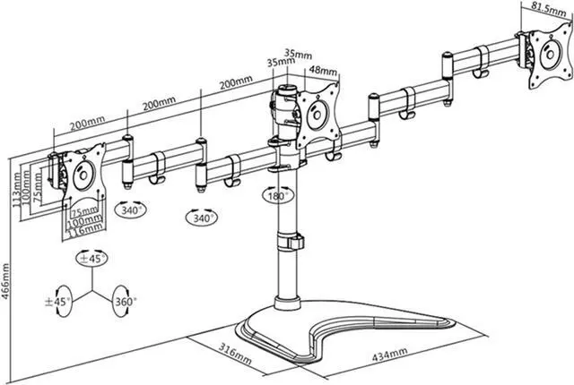 - Tilt angle adjustment: ±45°