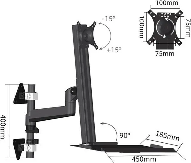 Wall Mounted Monitor Stand, Industrial Equipment Monitor Stand with Foldable Keyboard Tray, Adjustable Sit-Stand Workstation, VESA 75x75 ,100x100mm