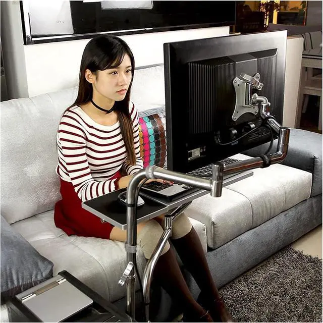 Monitor Arm, Bedside Moving Laptop Stand Adjustable Sofa Computer Monitor Holder Mount +Keyboard Holder Rotating Laptop Table Lapdesks(Nero-1)