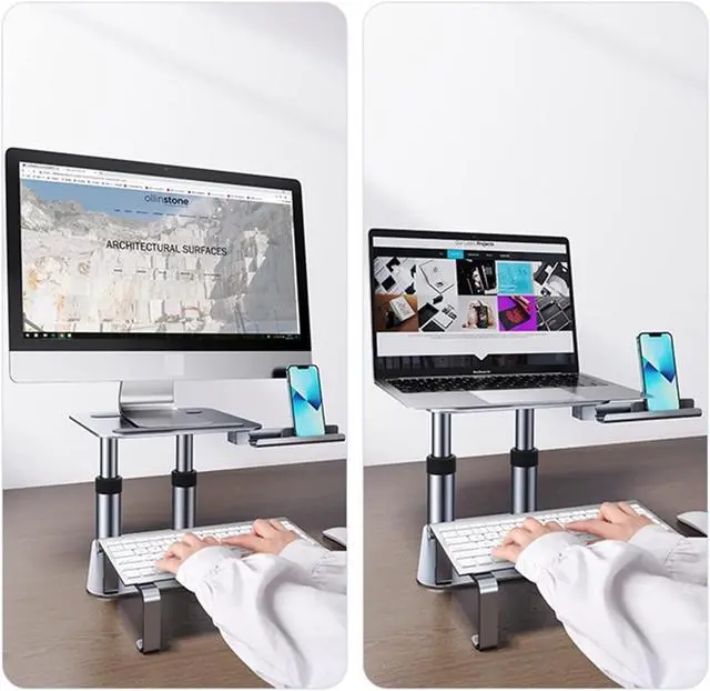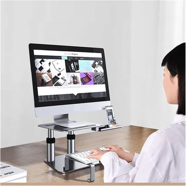 VERSATILE STAND Adjustable computer holder, which you can adjust it 's height and store your keyboard, Adjustable phone tray for easy access to your phone, help to release your hand when watching. It's a great choice to make your desk tidy and organized.