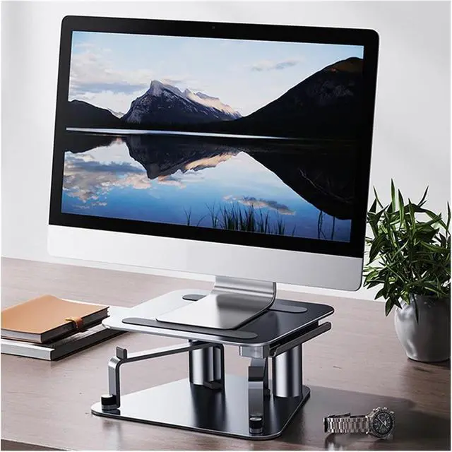 HEIGHT ADJUSTABLE COMPUTER STAND Ergonomic adjustable computer holder, adjustment to a viewing height.The laptop stand will help decrease the fatigue and soreness in your body after long hours of uncomfortable seating and hunching, good helper for your work.comfortably during working.