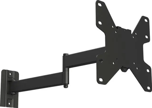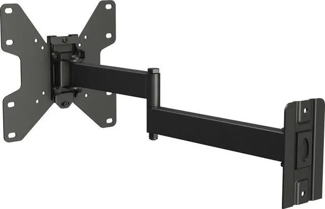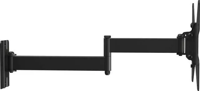 Full motion articulating wall mount for 13"- 49" displays. Single arm holds display 2" from wall when retracted and 20.4" when fully extended. Smooth tilt adjustments of +10° (forward) -2° (back) and 3° of side-to-side roll facilitates a variety of viewing angles and perfect positioning. Two attachment points for wood studs and concrete walls provide additional security. Optional cable management for clean look.