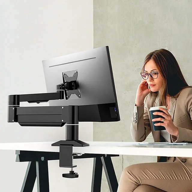 Our Monitor Bracket Arm features a high-quality oil-gas hybrid design for adjustable height and extension. With a three-axis linkage system, this versatile Mounting Solution allows for optimal viewing angles in various settings. Perfect for Home Offices, Gaming Stations, or Workspaces, it enhances ergonomics and maximizes desk space efficiently.
