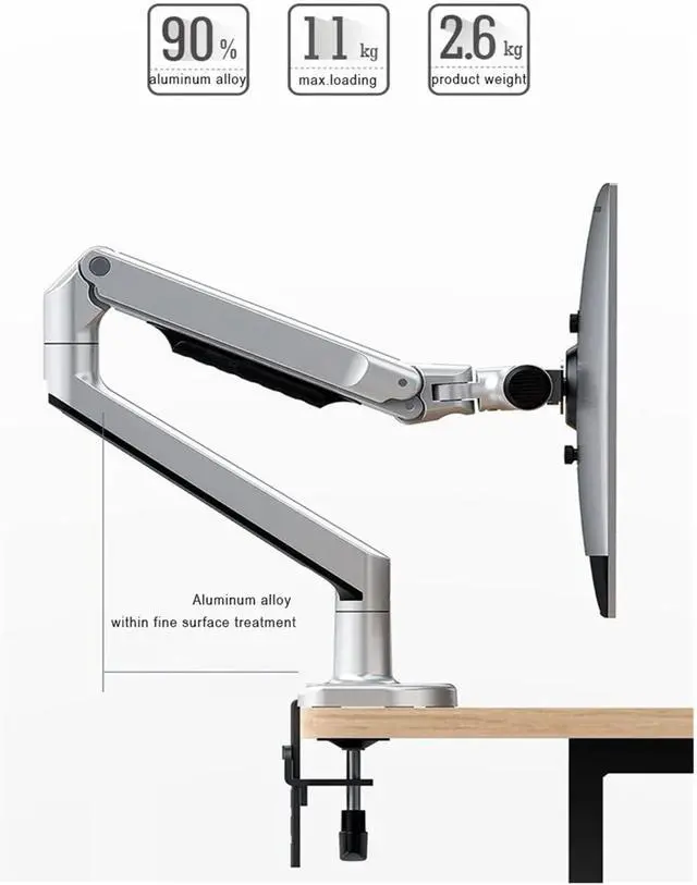 Aluminum Desktop Clamping 17-38" Monitor Holder Mechanical Spring Arm Free Lifting Full Motion TV Monitor Mount