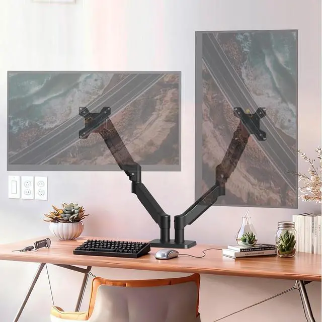 FULL-MOTION ADJUSTMENT: This dual monitor arm enables +/-90° swivel to adjust the screen towards your Excellent position, +90°/-35° tilt to reduce glare, and 360° rotation to switch between landscape and portrait orientations. Experience ultimate comfort by customizing the setup for both screens