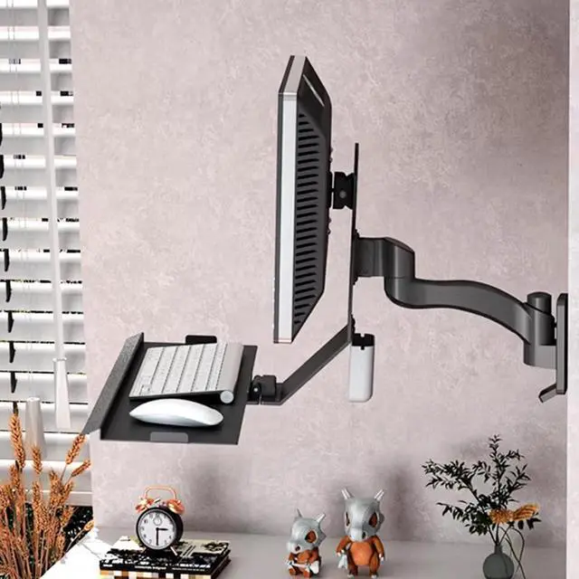 Space-Saving Wall Mount Workstation: Elevate your monitor, keyboard, and mouse with this wall-mounted tray arm, creating an efficient wall mounted desk that replaces bulky standing desks. Features a foldable wall mounted desk design for maximum space optimization.