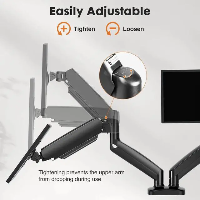 Advanced Gas Spring Technology for Smooth Operation: Featuring a robust gas spring mechanism, this monitor mount automatically adjusts tension based on your monitor's weight. Factory-tested for 25,000 cycles, it ensures effortless height adjustments and long-lasting durability, providing a seamless experience for daily use.