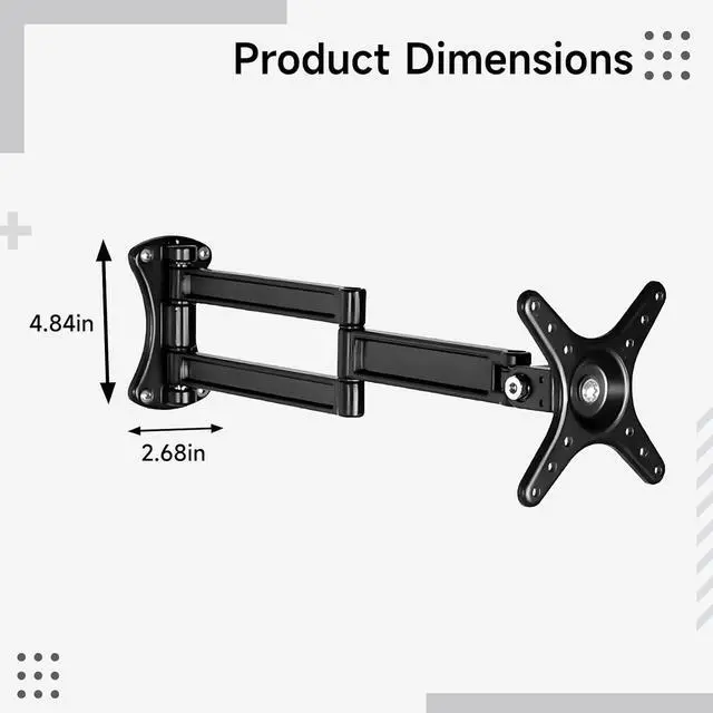 Color: Black Material: Aluminum Alloy Size: Wall Mount: 4.8 x 2.7 in / 123 x 68 mm,Wall Mount Hole Distance: 3.9 in / 98 mm,Wall Mount Hole Distance: 1.9 in / 47 mm Package Includes: 1 x Stand Note: - Please refer to the measurement. Tiny measuring error is allowable in normal range. - There might be a little color difference due to the monitor, camera or other factors, please refer to the physical item.