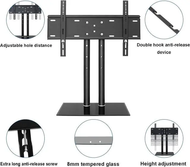 Monitor Arms TV Stand Desktop TV Stand Desktop TV Base, Suitable for 40 Inch to 70 Inch Screens, Adjustable Height, Dual Column Support