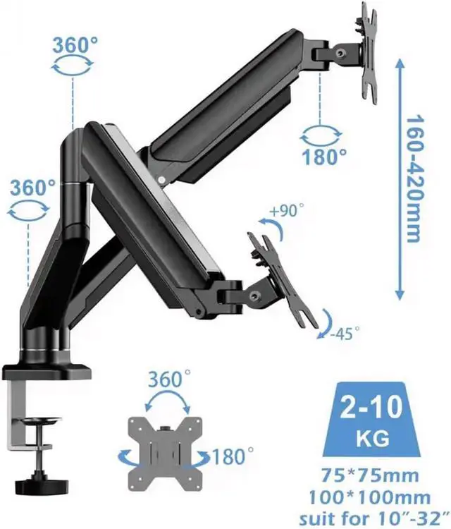 unparalleled flexibility with our Double Arm Aluminum Monitors Stand, up to 10KG per arm
