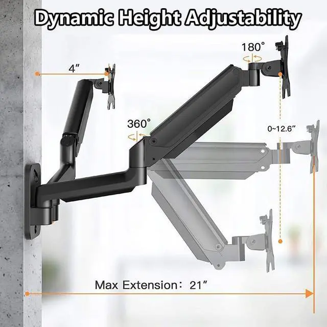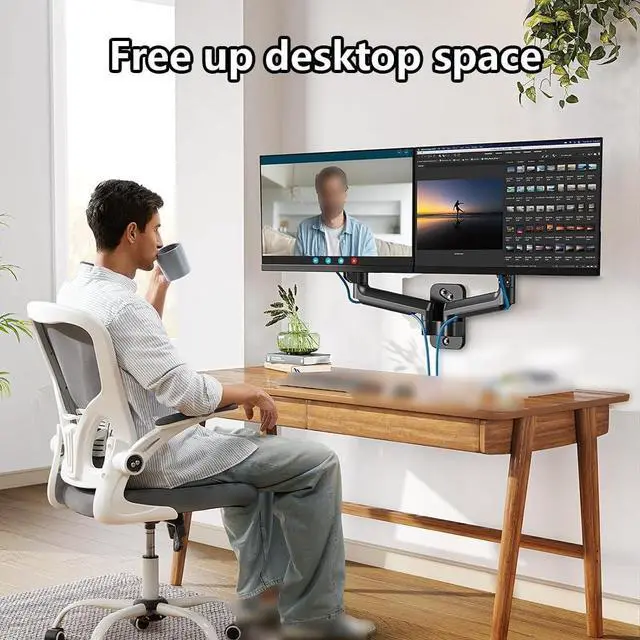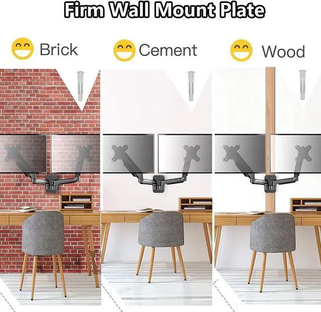 Easy Assembly The monitor arm comes with cable clips for easy tool storage, keeping cables neat and your desktop clean. Please refer to the installation manual; this wall-mounted monitor bracket can be securely installed on wooden wall posts, solid concrete walls, and brick walls, ensuring the safety and stability of your monitor.
