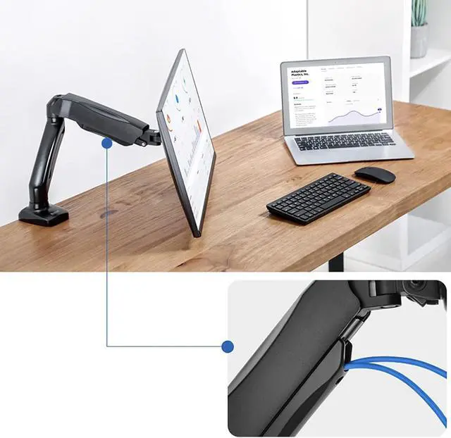 This height-adjustable single monitor arm can raise the monitor to an ergonomic height to reduce neck strain and allow you to work and play in a comfortable position.