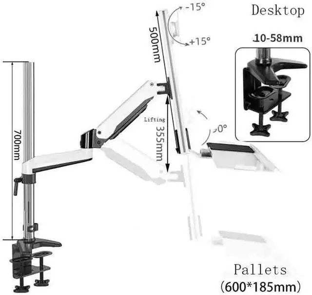 This clamp table base monitor stand securely supports your screen (fits tables with a thickness of 10-58mm) and saves you valuable desk space.