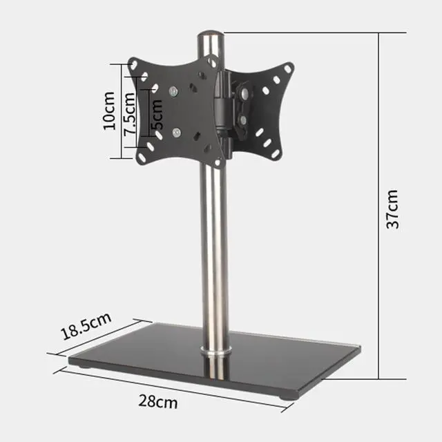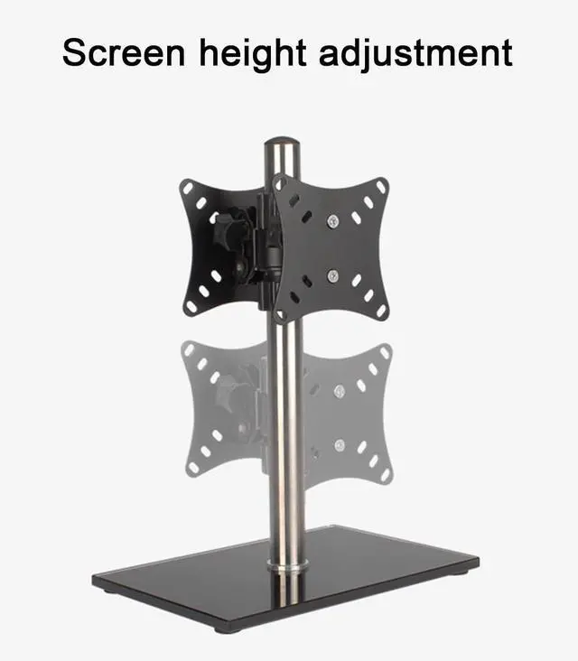 COMPATIBILITY -- TV stand mount Fits most 14-27 inches TVs, max bearing 10kg,supporting hole spacing within 100*100mm, Can be height-adjusted, 360° horizontal and vertical screen switching,which is easily applicable to different monitor.