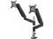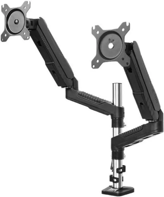 This dual-monitor desktop stand offers full flexibility, with screen tilt +90°/-80°, swivel range of 180°, and 360° monitor rotation for landscape or portrait viewing. Easily configure ergonomic viewing angles for maximum comfort and productivity.
