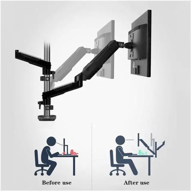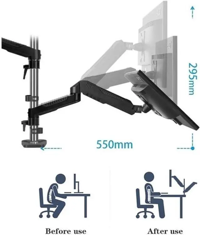 This dual monitor stand features a 15.7/27.5-inch tall column that allows you to raise the center of your screens by 11.6 inches. This elevated column design is a great convenience for taller users who prefer a higher viewing angle or who have a higher stature, providing more height adjustment options for a more comfortable viewing height.