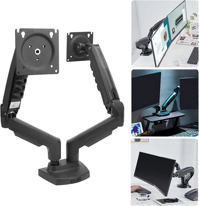 [Versatile Compatibility] This double screen stand supports monitors ranging from 17 to 27 inches with a robust capacity of 9kg per arm. it is universally compatible with vesa mounting standards (75x75mm and 100x100mm), ensuring seamless integration with various brands and model. for gaming setups, this stand guarantees a secure and stable hold for your screens.