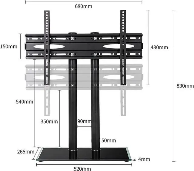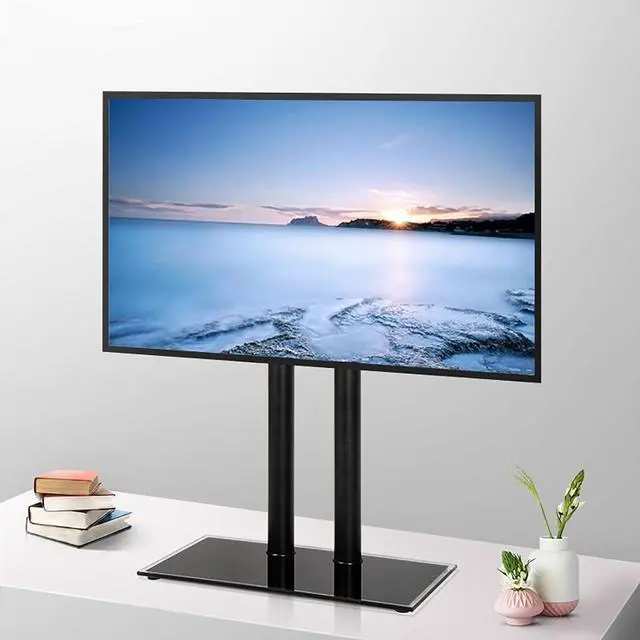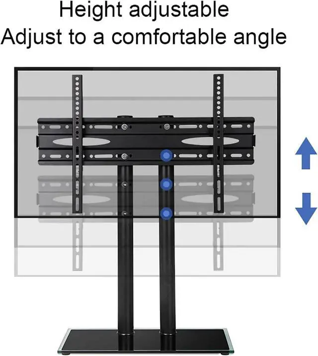 Monitor Arms Universal Tv Stand, Desktop Tv Stand, Base, Adjustable Height of Tv Legs, Suitable for 32-70 Inch Tvs with Thickened Tempered Glass Base
