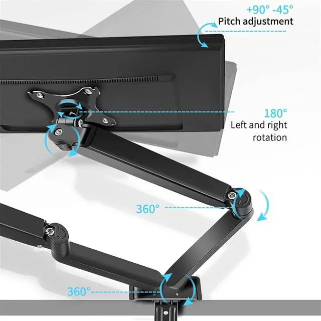 Multiple Adjustment: The high-grade material spring arm can be extended 18.8" and retract gased, +90°/-45° tilt and arm 360° swivel to change reading angles, and 360° rotate from landscape to portrait mode.