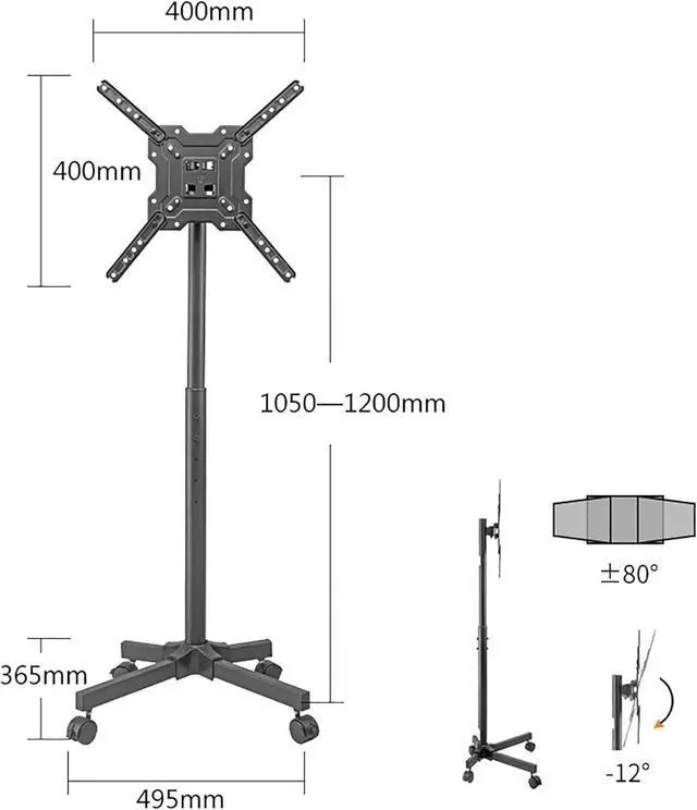 Monitor Arms Tv Stand Mobile Tv Cart, Suitable for 17-50 Inch Tvs and Monitors with Adjustable Height, Suitable for Home and Office Use