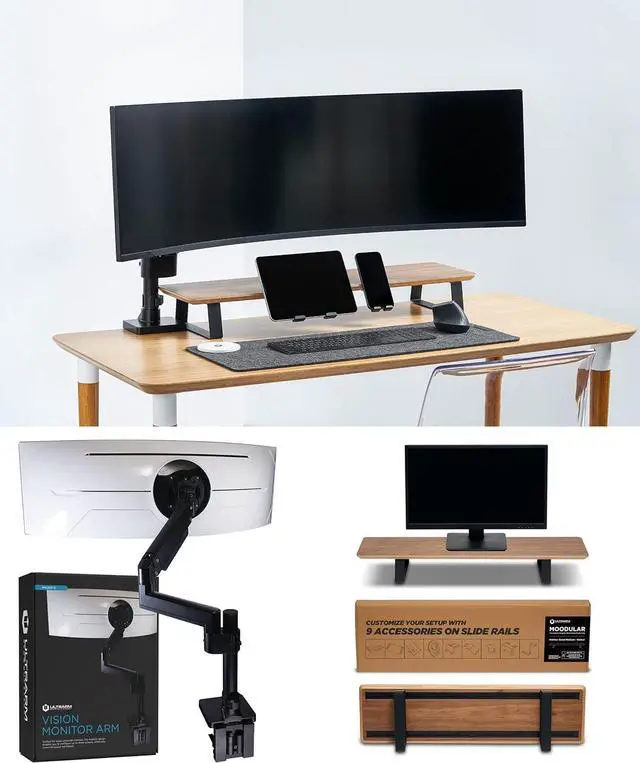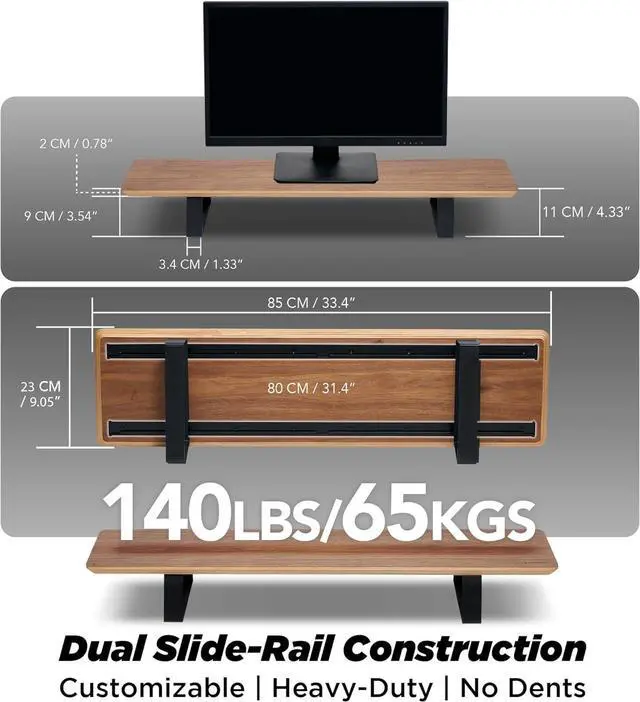 Reclaim Valuable Desk Space - Elevate your monitor off the desk and store your laptop, tablet, phone, and headphones neatly underneath the wooden riser.