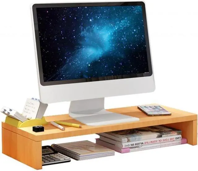 Monitor Riser Ergonomics: Elevate your screen to the perfect ergonomic height with our Wood Monitor Riser. Transform your desk into a chic workspace while eliminating neck and back strain caused by prolonged screen gazing, promoting a healthier and more productive work environment