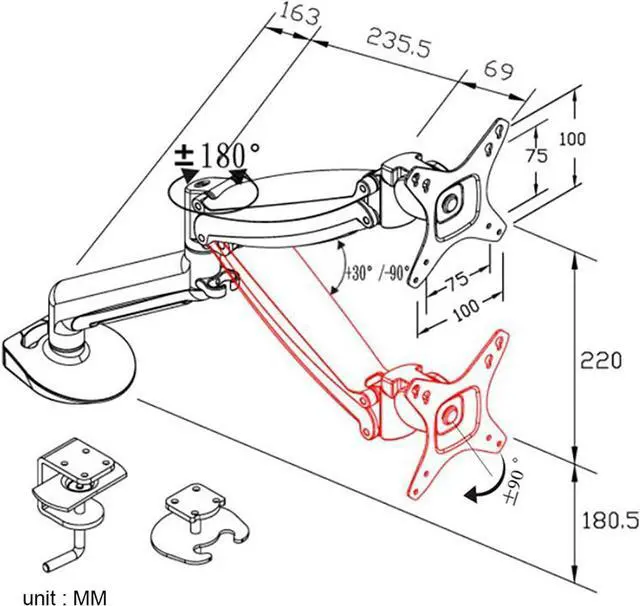 Two Desk Mounting Options - The device can be mounted using the provided C-clamp or through-hole mounting. The clamp mount fits most desks 2-6 cm/0.78-2.36 inches thick, while the through-hole mount fits desks 2-5 cm/0.78-1.96 inches thick.