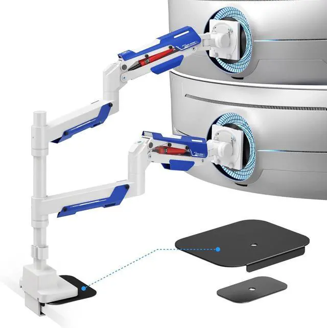• Protect & Preserve Your Desk SurfaceARES WING monitor arm reinforcement plate is designed for both C-clamp and grommet monitor mount, effectively distributing pressure to reduce desk surface distortion, dents, or scratches caused by mounting. Its perfect for protecting delicate desktops like glass, particle board, ceramic and MDF.