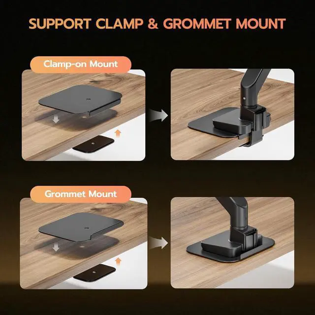 Protect & Preserve Your Desk SurfaceARES WING monitor arm reinforcement plate is designed for both C-clamp and grommet monitor mount, effectively distributing pressure to reduce desk surface distortion, dents, or scratches caused by mounting. Its perfect for protecting delicate desktops like glass, particle board, ceramic and MDF.