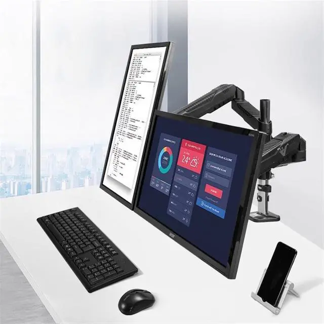 The dual for desk features full motion flexibility with +90°/-80° screen tilt, 180° swivel range, and 360° monitor rotation for landscape or portrait mode. Easily configure an ergonomic viewing angle that can maximize comfort and productivity.
